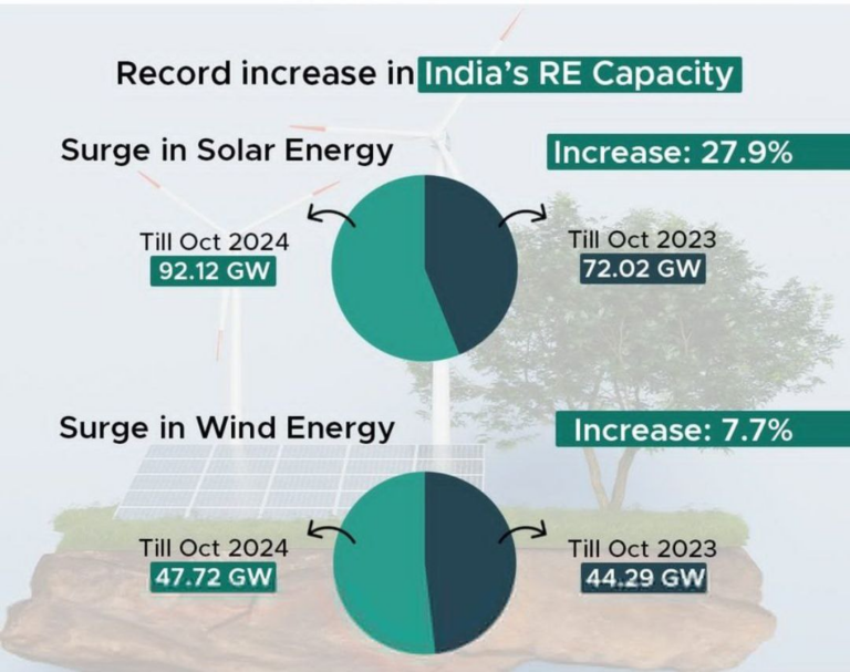 India’s total renewable energy installed capacity increased by a staggering 24.2 GW (13.5%) in a year, reaching 203.18 GW in October 2024 from 178.98 GW in October 2023. This significant rise aligns with India’s ambitious targets in the field of RE sector. Including nuclear energy, the total non-fossil fuel capacity rose to 211.36 GW in 2024, compared to 186.46 GW in 2023. Solar and Wind Power […]
